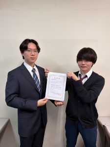 2025年7月12日に開催されました日本知能情報ファジィ学会 知的制御研究部会 第87回知的システム研究会(SIC2025-1)において,精密機械工学専攻1年の竹中一矢さん,篠崎佑太さん(指導教員:井上健)が優秀発表賞を受賞しました.