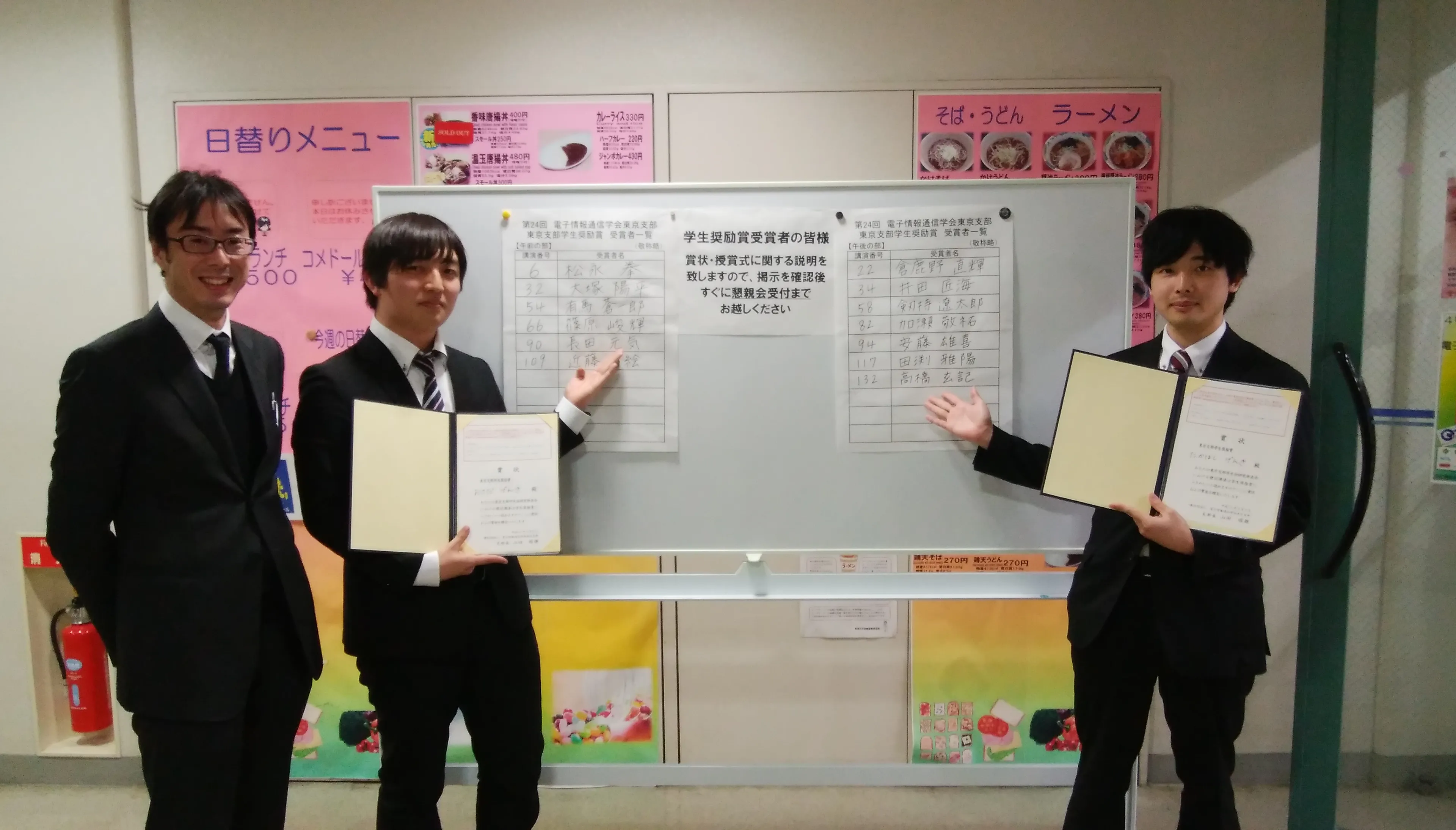 授賞式は平成30年3月3日(土)の電子情報通信学会東京支部学生会第23回研究発表会の懇親会にて行われました。