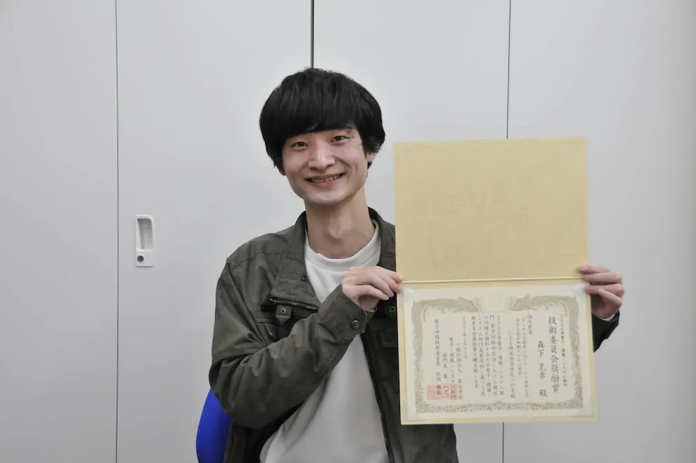 両名は,アクティブノイズコントロール(ANC)の研究をしており,学会では入出力データ数固定の逐次部分空間同定法に基づくANC手法提案し,従来手法の部分空間同定法と比較して計算量を低減しつつ,時変伝達経路を有する系においても高い消音制御性能を実現することを発表しました.優秀発表賞は論文,プレゼンテーション,質疑応答を含めた発表が優れた人に贈られる賞です.