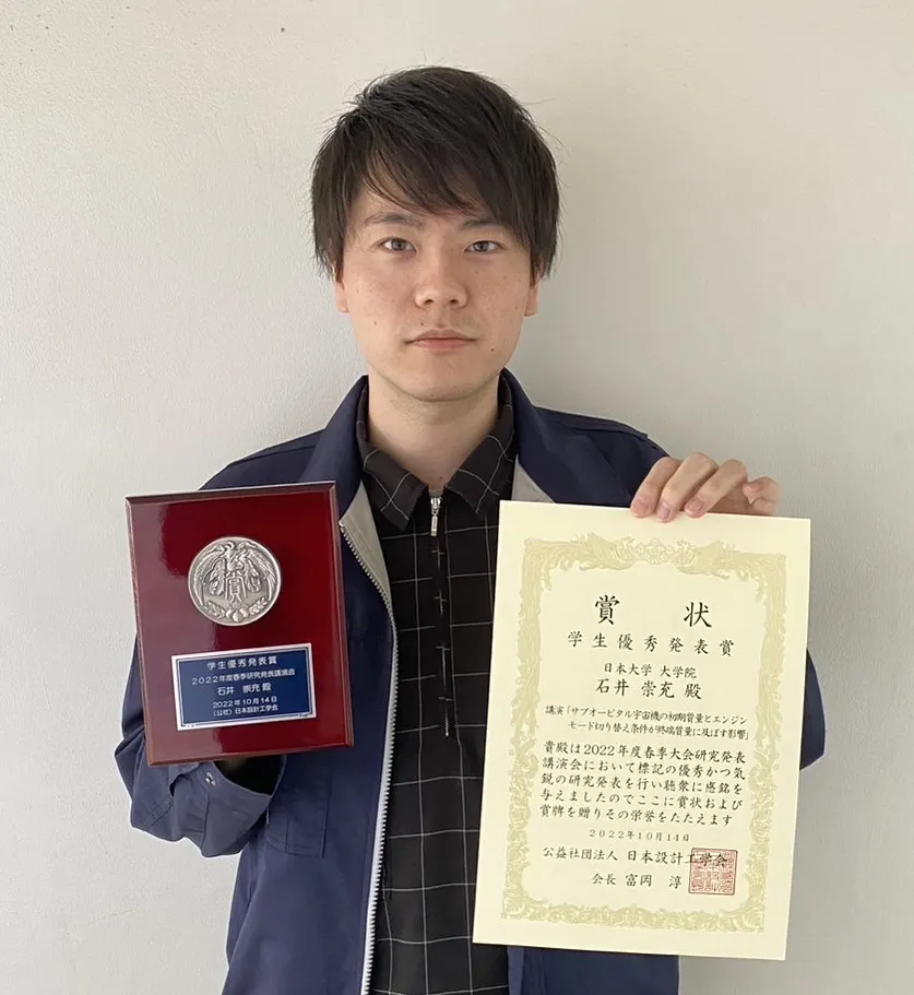 石井さんは「サブオービタル宇宙機の初期質量とエンジンモード切り替え条件が終端質量に及ぼす影響」と題した発表で評価されました。