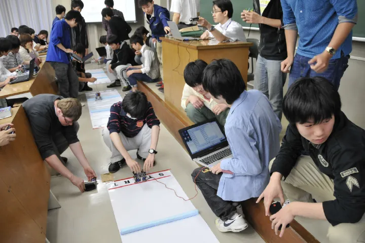 基本的なロボット制御を例として、数学、物理、制御理論、力学をはじめ、これまでに学んだ工学系学問の各種知識をどのように応用してロボット製作を実現するかについて学びます。