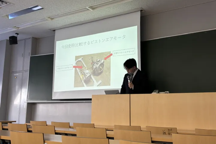 4年次より、力学系、機械系、電気・電子・マイクロマシン系、計測系、制御・ロボティクス・情報系の各研究室に配属し、各種精密機械工学に関する研究をスタートします。4年生の最後には卒業論文を作成し、その発表会を行います。また、大学院に進学することによって、より深い知識や技術を身につけ、国内・国際学会にて成果発表を行います。